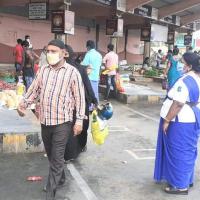 Due to lockdown, nearby daily vegetable markets-Suramangalam Uzhavar Santhai shifted to the Salem New Bus Stand. In order to maintain the public not to be in crowd and maintaining social distance, our team of Scouters, Guiders and Rovers of Salem district rendered their service at New Bus stand and Palmarket from 06:00AM to 09:30AM. from 24th March and continuing till date.