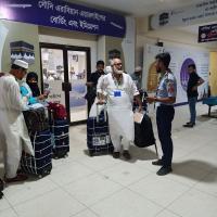 The rover members of Bangladesh Scouts are leading the service of Hajj pilgrims for a month at Dhaka Ashkona Hajj Camp under the initiative of Bangladesh Hajj Committee.