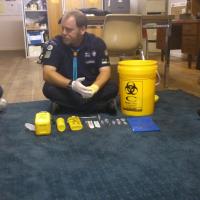 Members of the Draco Scout Fellowship have been visiting all sections (Joeys, Cubs, Scouts, Venturers and Rovers) to teach them about the dangers of 'sharps' (needles and other drug releated paraphenalia) in the environment. The junior program focuses on what to look out for and what to do if you find 'sharps' with our motto 'Don't Touch it, Don't Touch it, Don't Touch it.' The senior program also looks at managing the risk is a danerous object is found. So far we have delivered 20 programs over the last 6 months and are continuing with it for at least the next six month. The program also includes a camp blanket badge.