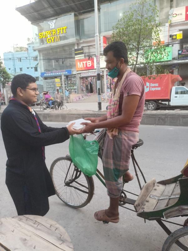 * Distribute the food during lunchtime to rickshaw pullers, van drivers, day laborers, and other helpless people on the streets.