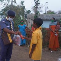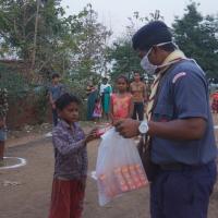 The Rovers & Rangers of Bargaon ITI Unit of Odisha State Bharat Scouts & Guides distributed snacks, biscuits to the people of Gourpada of Bargaon Village, Block-Bargaon, Dist-Sundargarh, Odisha