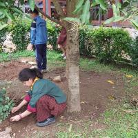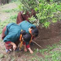 The scouts of Kengkhar Middle Secondary School observed the Social Forestry Day by nurturing the existing trees and plants in the school.