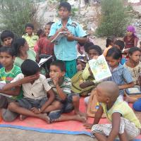We are teach twice a week in slum area and give knowledge of messenger of peace time evening 6 to 7 o'clock 35 children teach in camp. And also teach hindi,English, math,and general knowledge. Children's give a school beg ,books and clothes.