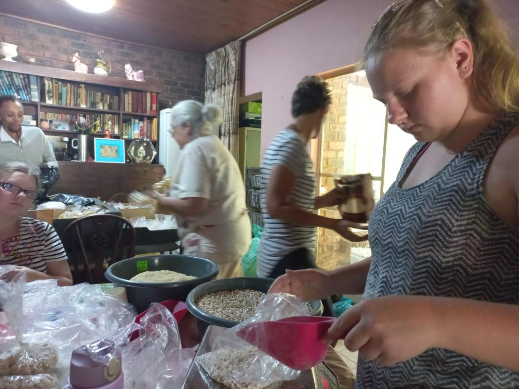 Three days a week & for 4 hours, food parcels are packed & handed out to under privileged people who stay on the street & twice a year a big special event is hoisted for under privileged children where they will receive food,gifts,toys toiletries etc. These events are a whole day where activities are planned just for the kids.