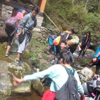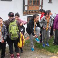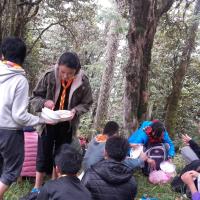 We have chosen 'Wangdue Ney' the holy place where Guru Rinpoche subdued all the demons and were brought under his control as our spot for spiritual hike, camp and community service. 76 scouts and 4 teachers started our journey at 7am in the morning and reached the destination at 2pm. We took rest for 30 minutes and went to visit various sacred places of Guru. While coming back we helped an old man (caretaker of the site) to carry and reach a stone till the construction site. Senior scouts prepared Camp fire and some prepared dinner. The camp fire programme went on till 9:30 pm.