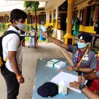 We reached the examination center at 7:45 am and started our duty. Our work is to maintain social distance, sanitizing the students who attended the exam and helping the invigilating staffs. We did our level best in the smiling face. Also we were guided to accompany the students who where will to go to wash room in between the examinations. At the time of 1:45pm the exams were done and students left the center, one by one. It was social science exam today. Hence extra 15 minutes were given to students to write exam At the time of 3 pm everything was clear and we went back to our home.