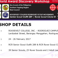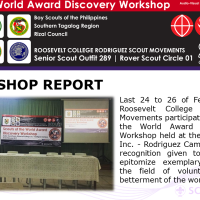 Last 24th to 26th of February 2017, the Roosevelt College Rodriguez Scout Movements participated in the Scouts of the World Award (SWA) Discovery Workshop held at the Roosevelt College Inc. - Rodriguez Campus. The SWA is a recognition given to the Scouts who epitomize exemplary performance in the field of volunteerism to attain betterment of the world.