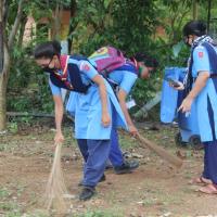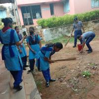 on the day of Gandhi jayanti the rovers and rangers of gopalpur college unit cleaning the college campous .in their the rover leader and ranger leaders and other college staffs are present.