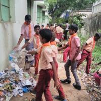 In our school Swach Bharath Mission @ school Campus cleaning project done 60 Scouts & 60 NSS students took part in it .they cleaned the whole school campus and collected garbages & disposed them as soon as.