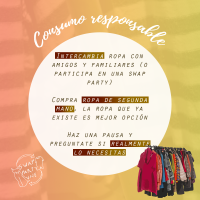 Swap Party Valle Noreste surge para cuestionar nuestra manera de consumir ropa, encontrar nuevas formas de consumo y compartir información sobre el consumo responsable, la problemática del fast fashion y cómo podemos hacer que nuestra ropa tenga una vida útil más larga. Además, en un futuro postpandemia, realizar intercambios de ropa que ya no está siendo aprovechada para darles movilidad y tengan una segunda vida.