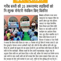 स्लम क्षेत्रों में सेवा कार्य करते हुए वहां रहने वाली लड़कियों को मासिक धर्म के समय आने वाली परेशानियों से जूझते देखा ,वो मासिक धर्म के समय पुराने कपड़ों का इस्तेमाल करती थी ,वो देख कर उनके प्रति कुछ कार्य करने का मन हुआ तभी से सामूहिक प्रयासों से हम स्लम क्षेत्र की जरूरतमंद लड़कियों को निशुल्क सेनेटरी नेपकिन वितरित कर रहे हैं