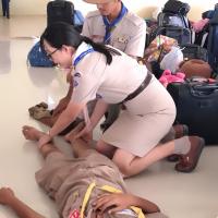 สอนปฐมพยาบาลคนเป็นลม ให้กับลูกเสือ-เนตรนารี โรงเรียนคลองมหาวงก์