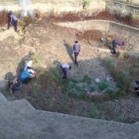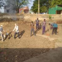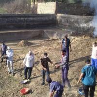 तालाब कि सफाई करते हुए
