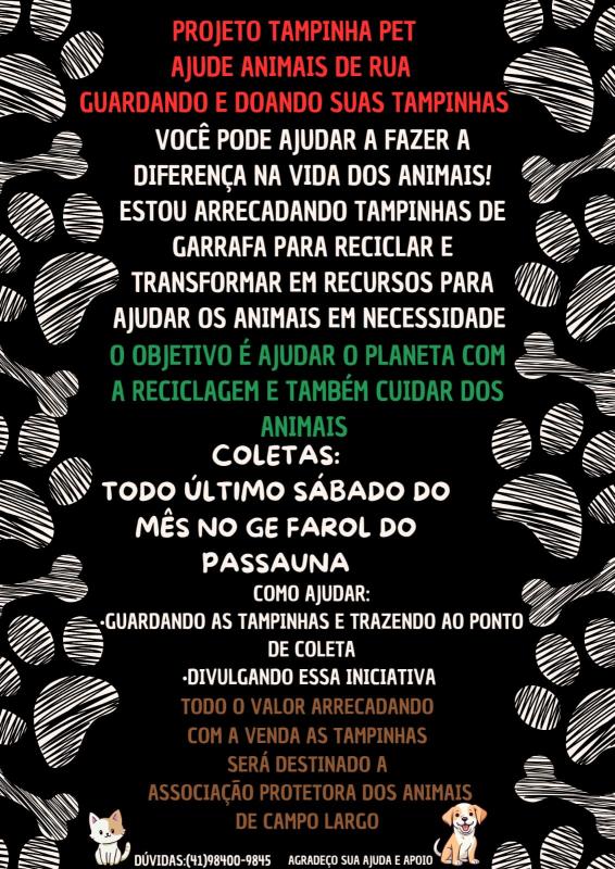 “Então eu aprendi que coletar tampinhas faria não só o bem para o planeta mais também eu estaria ajudo os animais de rua a ter comida e receber castração.