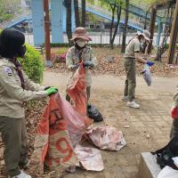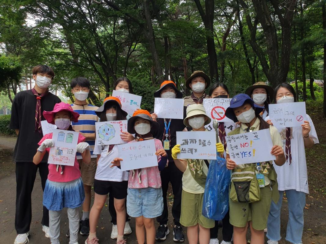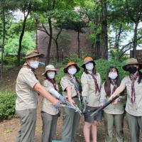 코로나 펜데믹으로 스갘우트의 활동이 어려워졌다. 온라인상의 활동 이외에 외부활동을 찾은 것이, 서울시에서 운영하는 나무돌보미 (Adopt a tree)활동이었고 우리 마을의 나무돌보미 프로젝트를 강동구청에서 모집한다는 것을 알게 되었다. 특히 탄소 중립의 시대에 절박한 자연환경을 잘 보존하고 스스로 메신저가 되기 위해 관련 목표를 찾았다. 지속가능한 개발목표 17가지 가운데 우리의 목표는 15 ‘LIFE ON LAND’ 육지에서의 삶, 17 ‘CLMATE ACTION’ 기후행동에 더 나은 세상을 위한 환경변화 활동에 참여하는 것으로 정하였다. 비록 작은 것이지만 우리 대원들이 함께 4-6명 소규모 모임으로 만나서 스카우트의 선서를 잊지 않고 청정한 마을을 만드는데 일조하고 대원 모두가 나무에서 배우는 자연에 대한 고마움과 기쁨, 소중함을 나눌 수 있었다. 평화의 메신저는 지구 온난화에 따른 내용을 잘 알고, 그에 따른 작은 실천을 할 수 있도록 일회용 사용 물품을 줄이자고 다짐했다.