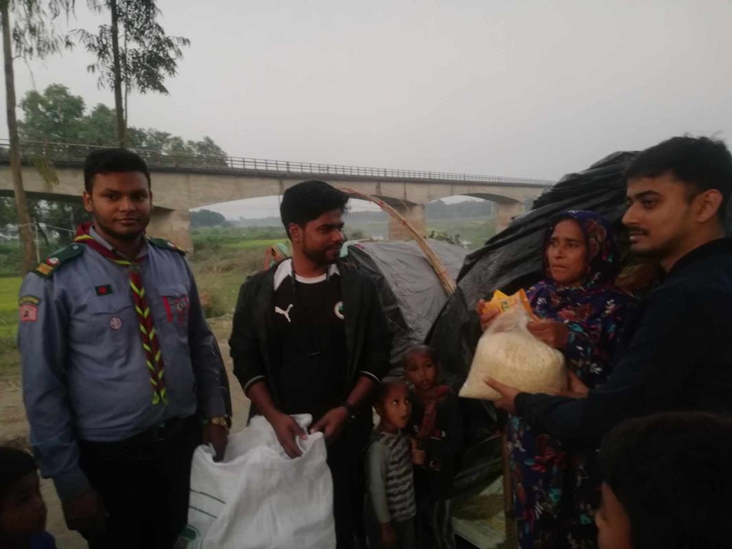আমাদের জেলার কিছু জায়গা আছে যেখানে ভাসমান মানুষ অবস্থান করে, জাগির ব্রিজের নিচে সেই মানুষ গুলো বাছাই করে আমরা ৬জন রোভার তাদের ২৪জন শিশুদের জন্য এক বেলা কিছু শুকনো খাবারের ব্যবস্থা করার পদক্ষেপ গ্রহন করি। এই কাজ আমরা ২দিন ব্যাপি করি এবং সকাল ১১টা থেকে বিকেল ৫টা অব্দি করি,