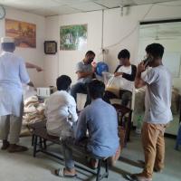 রাজধানী ডেমরাতে ৫০ জন পরিবারকে ১৫ কেজি চাল, ৫ কেজি আলু, ১ কেজি ডাল, ২ লিটার তেল, হলুদ এবং মরিচের গুড়ার প্যাকেট দেয়া হচ্ছে।