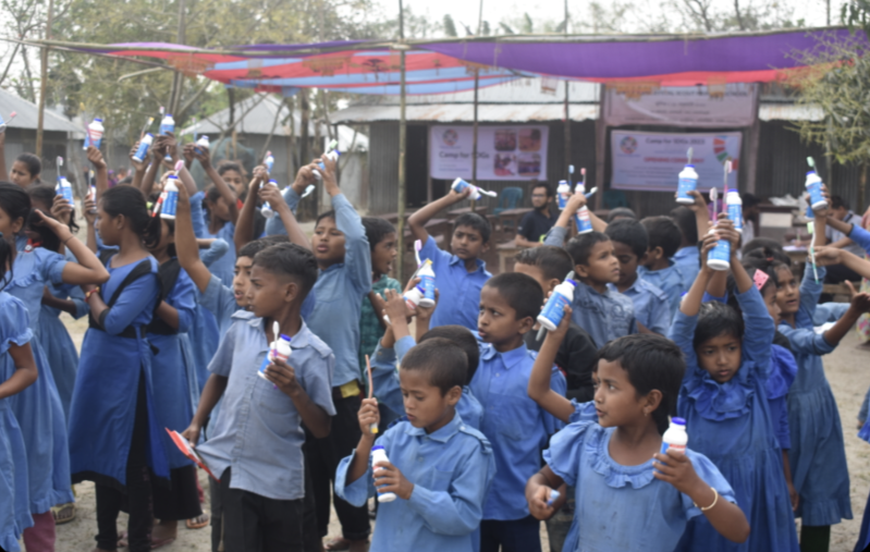 টুথ পাউডার এবং ব্রাশ বিতরণ।