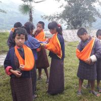 Taught how to use scarf in emergency; when there is in need of helping other people. I taught them how to use scarf to make Arm sling, using as a badge to cover injured part on knee or on head. Taught them how to handle and transport patients or injured people through improvisation. Children really enjoyed a lot in order to learn that skills.