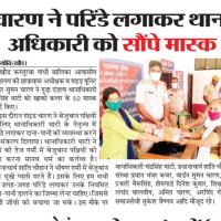 खौड कस्तूरबा गांधी बालिका आवासीय विद्यालय की छात्रावास अधीक्षक व गाइड यूनिट लीडर सुमन चारण ने गुड़ा एंडला थानाअधिकारी चंद्रसिंह भाटी को खाकी कलर के 50 मास्क सुपुर्द किए| इस दौरान गाइड चारण ने बेजुबान पक्षियों के लिए थानाधिकारी भाटी के नेतृत्व में परिंडे लगाकर दाना-पानी की व्यवस्था करने का संकल्प दिलाया| थानाअधिकारी भाटी ने कहां की तेज गर्मी में बेजुबान पक्षीयों की सेवा करना मानव धर्म का कर्तव्य है| प्रधानाचार्य शांति चौहान ने भीष्ण गर्मी में बेजुबान पक्षी भूखे प्यासे मरते हैं, इसके लिए हम सभी को जगह-जगह परिंडे लगाकर उनके नियमित दाना-पानी डालने का जिम्मा लेना चाहिए| जिससे प्राणी जीवो को बचाया जा सके| इस मौके पर थानाधिकारी चंद्रसिंह भाटी, प्रधानाचार्य शांति चौहान, संस्था प्रधान भंवर कवर, वार्डन सुमन चारण, बीट प्रभारी भैरूसिंह, होमगार्ड दिनेश कुमार,शिक्षक फूलचंद मालवीय, अमित चारण, अरविंद गोयल, समाजसेवी मुकेश वैष्णव आदि मौजूद रहे|