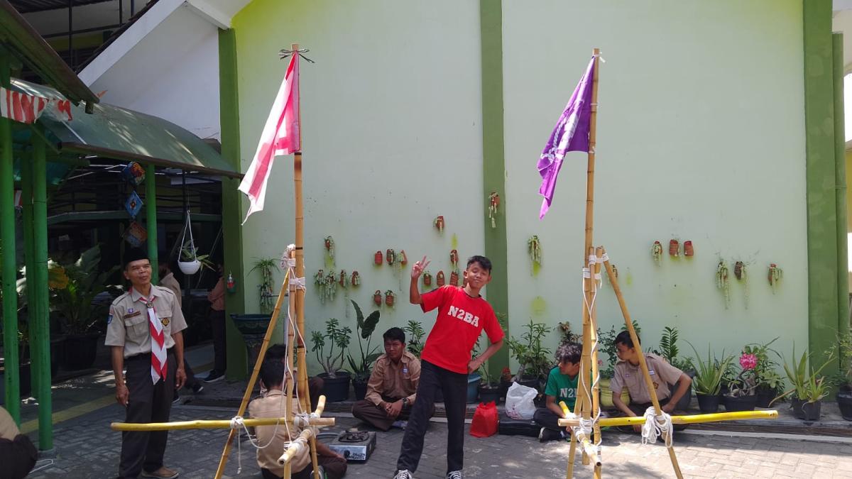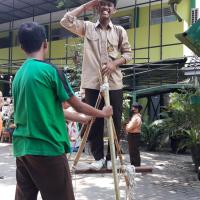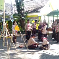 Kegiatan dimulai dari menyiapkan bahan pionering yaitu tongkat dan tali. Peserta dilatih menggunakan teknik demonstrasi pembuatan kaki tiga sebagai dasar pembuatan gapura tanpa pasak. Melatih membuat ikatan palang dan ikatan silang.