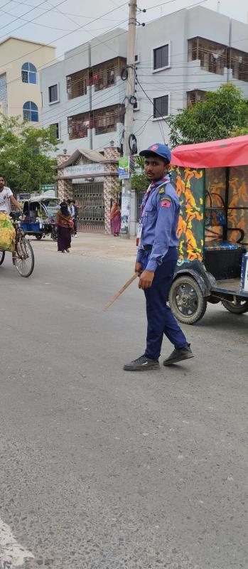 After the anti-discrimination student movement, in the absence of police, the smart Rovers of Madaripur Government College Rover Scout Group worked to control traffic congestion.