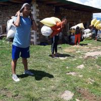 Labour help to transport rations and other offering materials of Lama Ngawang( Neljorpa) at Ridesersa, near Bartsham and Ramjar gewog.