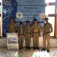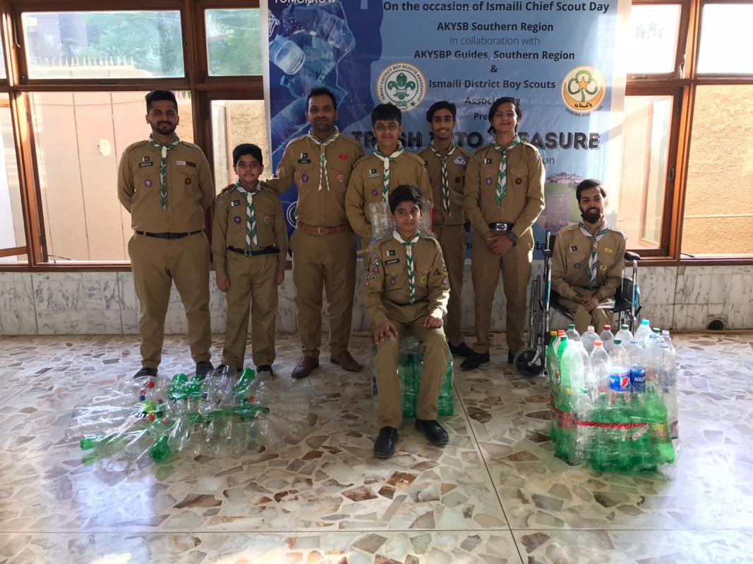 Ismaili Nizari Scouts Group collected plastic bottles from area houses and then make chair, dustbin and plant shade.