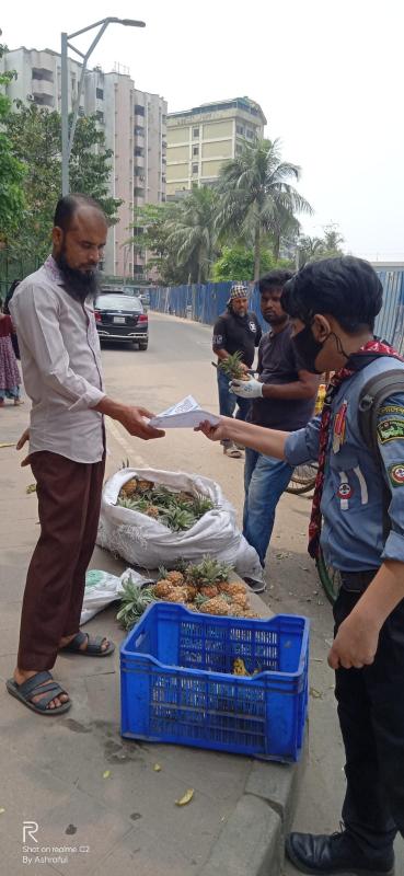 With the help of Patrol Leaders Md Mir Ashraful Islam and Rafiqul Islam Uday, and Rover Scouts Md Raiyan Mollah and Umid Hasan from Samatat Open Scout Group, we distributed educational leaflets on trash management in Shantinagar, Shantibagh, and New Eskaton under the project TrashTalk: Clean Today, Green Tomorrow.