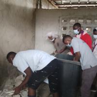 Ce projet à été mis en œuvre à la paroisse St FRANÇOIS XAVIER d'Abobo. Il a réuni 13 scouts ( chefs et jeunes) et 06 non-scouts. En vu de son exécution, nous avons tous d'abord balayer et vidé les caniveaux qui sont autours de l'Eglise, après cela, nous nous sommes scindés en deux groupe, un groupe pour balayer et essuyer l'église et l'autre groupe à vidé le grenier de l'église qui avait en son sein de vieux débris de construction.