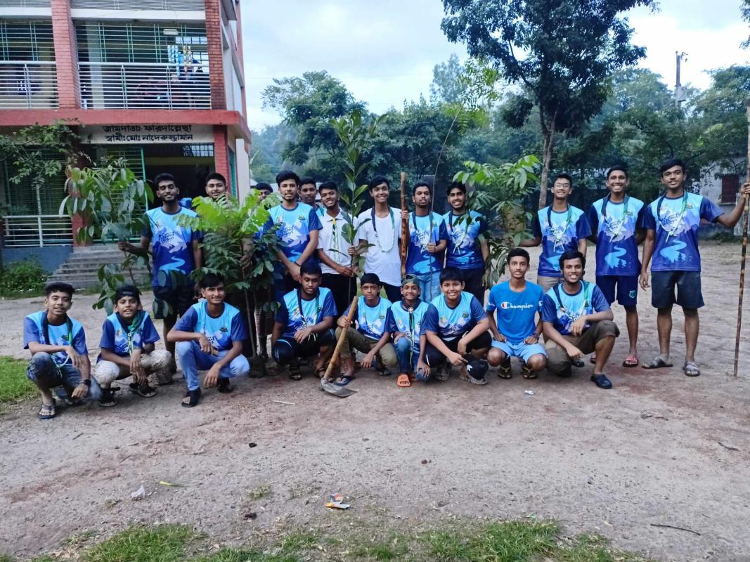 In July 2023, we planted trees in Shikdarpara Primary School. We dug this spot thoroughly with a shovel before planting the plant, then planted and watered it. Today, the plant is fast developing, and we water it every day.