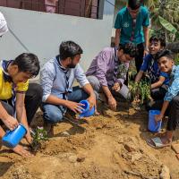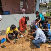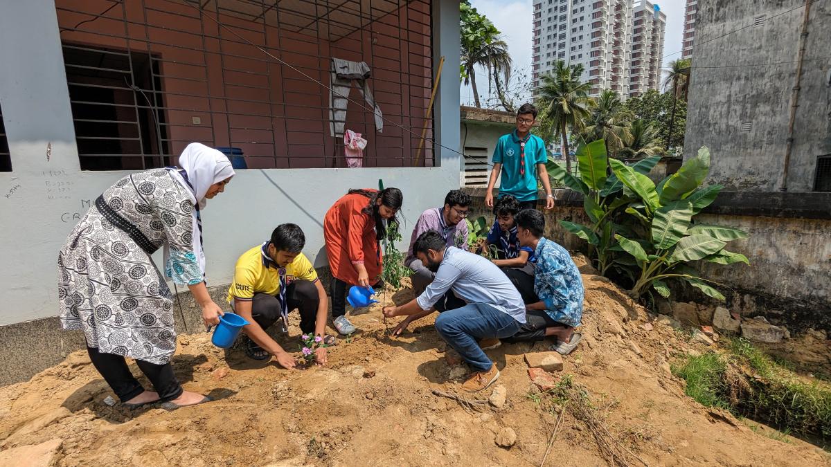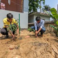 " To save the environment and nature we finally execute our eagerly cherished plan and planted a few trees. After planting trees we tried to spread good and proper idea about afforestation among the people nearby "
