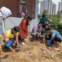 "To save the environment and nature we finally execute our eagerly cherished plan and planted a few trees. After planting trees we tried to spread good and proper idea about afforestation among the people nearby"