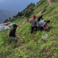 To observe the Social Forestry Day and the World Environment Week, a group of scouts planted about 100 pine tree saplings approximately.
