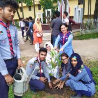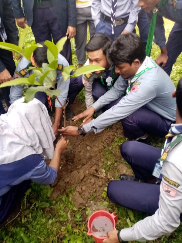 My project was implemented in my area. I did this as a team. Due to its climate and soil, Bangladesh has been famous for its greenery since ancient times. And this was not limited to the number of trees only, the variety of species was also rich. But compared to the area of Bangladesh, the amount of forest covered area is only 7.7 percent and 14 percent of the forest area compared to the land area. I talked to the people of my area about these issues. Then we start working as a team.