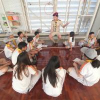 Participants : Scout leader Senior scout and Scout in DSIL School Aims : Develop and encourage morality, grateful, awareness in scouting. Planning and set the goal of each group by wisdom.
