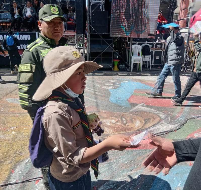 El equipo de Lobatos, guiado por sus Akelas, capacitó a los niños sobre la problemática de la trata y tráfico de personas y las medidas de prevención. Luego elaboraron pancartas y afiches que fueron distribuidos durante la festividad, logrando transmitir un mensaje de concientización a la comunidad.