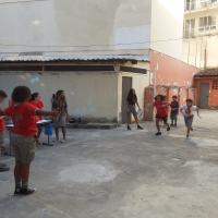 Foi por meio de um jogo educativo com perguntas e respostas. As pessoas que errassem as respostas tomavam torta na cara. Depois os jovens da patrulha explicavam a resposta certa.