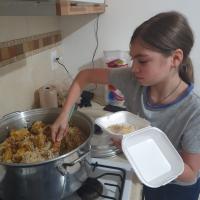 Para realizar las comidas, utilizamos la cocina de casa, elaborando distintos menús para poder repartir. Ya teniendo el menú de cada entrega, compramos los ingredientes y nos pusimos a prepararlos, después los colocamos en recipientes para poder repartirlos a las personas en la calle, teniendo días, rutas y horarios para hacerlo.