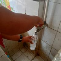 First we prepare clean water using the SODIS technique. After it was finished drying in the sun, we took the water bottles and gave them to people in need around a tradisional market at Lawang.