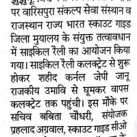 झुंझुनू विश्व पर्यावरण दिवस पर सी ओ स्काउट महेश kalawat के नेतृत्व में स्काउटस ने निकाली साइकिल रैली प्राकृतिक संसाधनों के संरक्षण का दिया संदेश