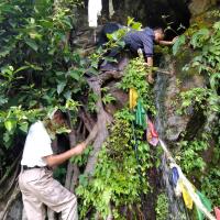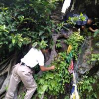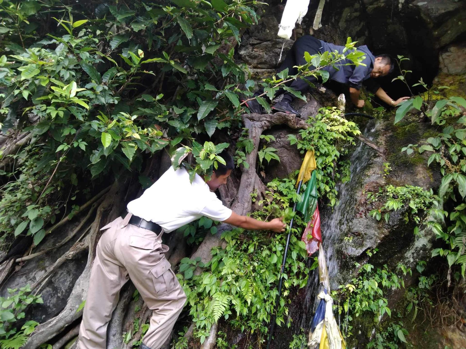 Under the guidance of our Scout Leader, we visited and cleaned Dungchu Mencho, a sacred site where it is said a dung flew from a rock, leaving a hole in its shape. We cut the overgrown grass and cleaned the water source flowing through the hole to maintain its sanctity.