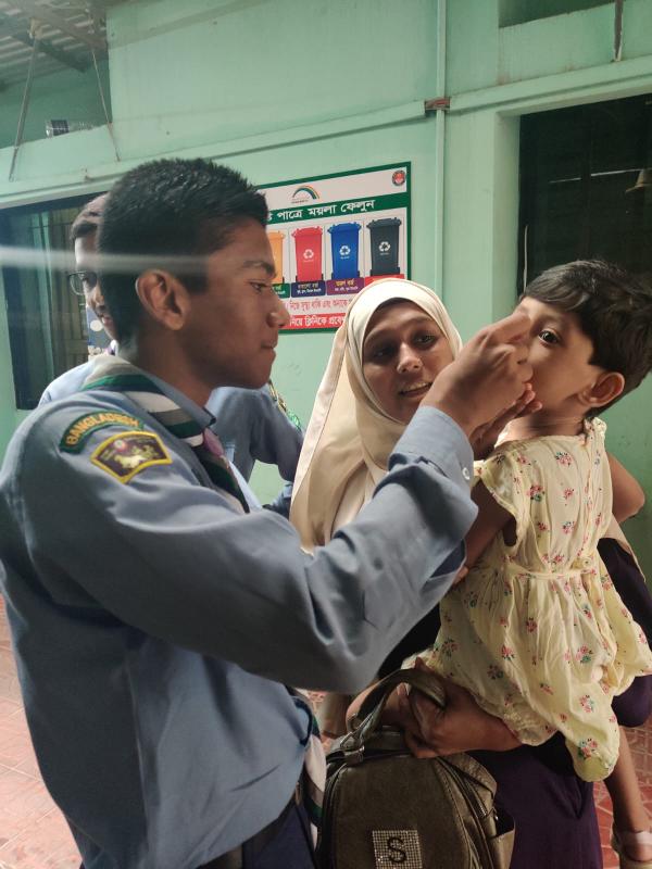 The scouts of Rajuk Uttara Model College gave service at Vitamin-A capsule campaign to the closest hospital from the school. We helped more than 300 children to get the proper amount of Vitamin A by providing service in this project.
