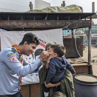 Scouts were educated on the 'Expanded Program of Immunization' (EPI) and the issues of Vitamin A vaccination. Red Vit-A capsules were given to children over 12 months & less than 5 years, whereas Blue Vit-A capsules were given to children less than 12 months to 6montha children