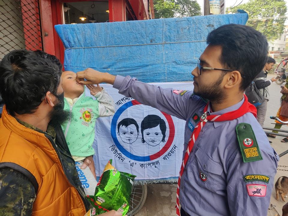 First we get a list from the local medical department with the help of our scout organization who are covered by this vitamin A campaign, then we have a list and stand in different parts of the city.