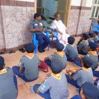 Our scout troop had a wonderful oppertunity to peform scouting service at Sri Saradha Ashramam ,Ulunthurpet.We are invited by a rover Mr.Kumar who lives in Neveli .Getting pemission from our H.M. Mr. T. Rajendhiran ,we started from Panruti in a van .With 30 scouts & one assitant -my student Madhan Kumar I reached Ulunthurpet Ashramam.It is the reception function of Swami Vivekanandha Radha yaathra .After taking break fast we are given a lot of woks at various work like arranging chairs,issuing prasatham,assisting security work with the Police men ,guiding the puplic & so on ..Around one lakh devoties visited that function . 27 Radhas of Swami Vivekanandha are gathered there .After finishig our service we are appriciated by the Seva Pranaam Maa Ji and gifted a small book & a still of Swami Vivekanandha .We recive Certificates for that service soon .ADP of Villupuram Dt. also appriciated our service .I thank Mr. Kumar ,Mr. Mohan, Dr. Mrs Arulmozhi ,Mr. Nellai Nayagam & all .