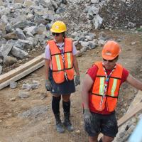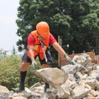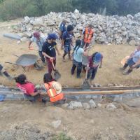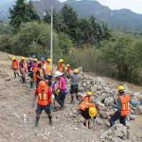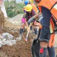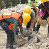 - Llenado de la base del talud de la escuela con piedras y tierra como estructura principal y soporte