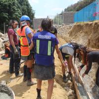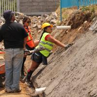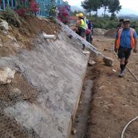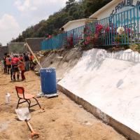 - Realización de colado y construcción de cimientos para el talud que sostendría la pared en riesgo de deslave