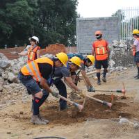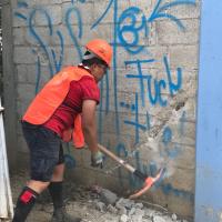 - Remoción de restos del muro destruido en la escuela primaria
