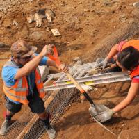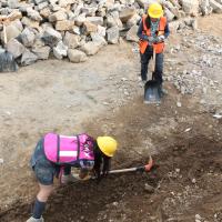 - Excavación y nivelación del suelo en la escuela primaria como preparativo para la creación de un talud